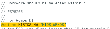 But, instead of define the Wemos hardware (#define MIRTOS_HW "MTOS_WEMOS" has to be commented) you should select :