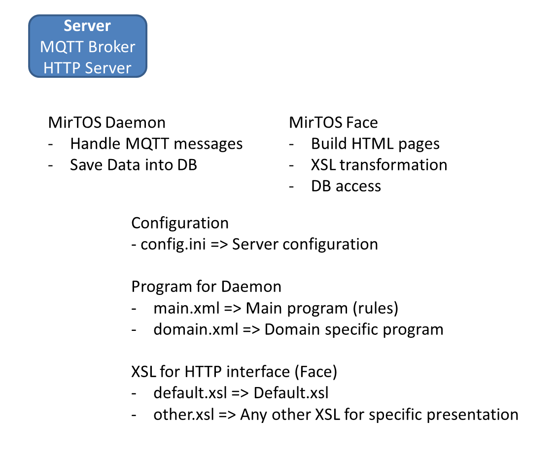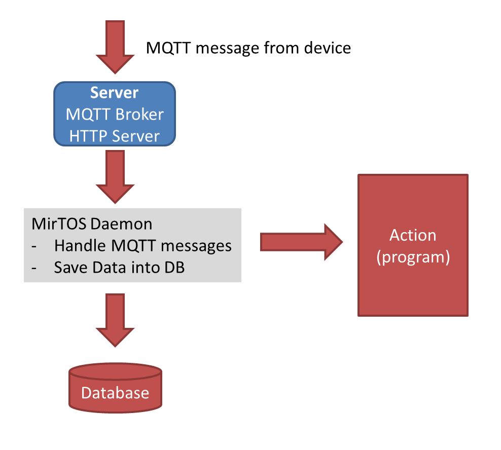 MirTOS demon (in charge of handling messages, and feeding the database)