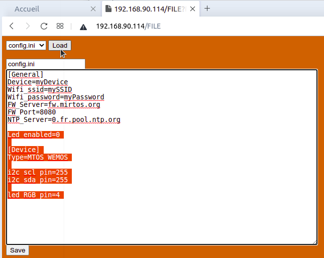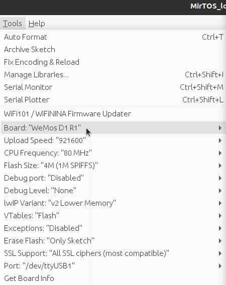 But, instead of define the Wemos hardware (#define MIRTOS_HW "MTOS_WEMOS" has to be commented) you should select :