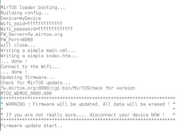 The easiest way to get started with MirTOS on your device, is to load it with the MirTOS loader, which will install the firmware with a minimal configuration.