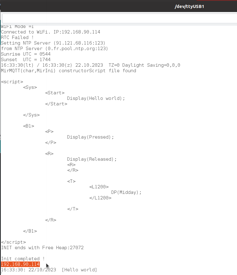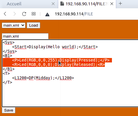 Now the module has to be restared (bouton Reset on the device or button reset on the page, or by typing RT(); on the serial interface)